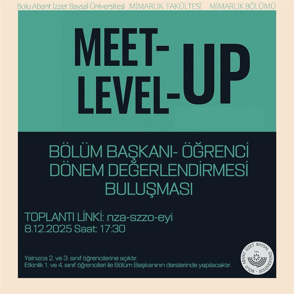 8 Aralık Pazartesi 17:30’da Google Meet aracılığıyla Meet Up/ Level Up Bölüm Başkanlığı- Öğrenci Dönem Değerlendirmesi Buluşmasına tüm 2. ve 3. Sınıf öğrencileri davetlidir.